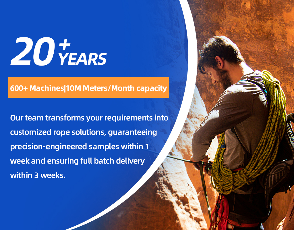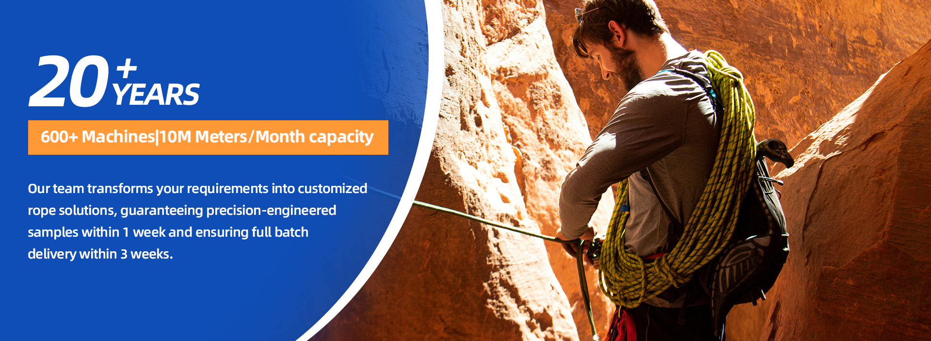 With 20 years of specialized experience and 600+ production machines, we deliver consistent quality ropes with a monthly capacity of 10 million meters. Our vertical integration ensures full control over every production stage.