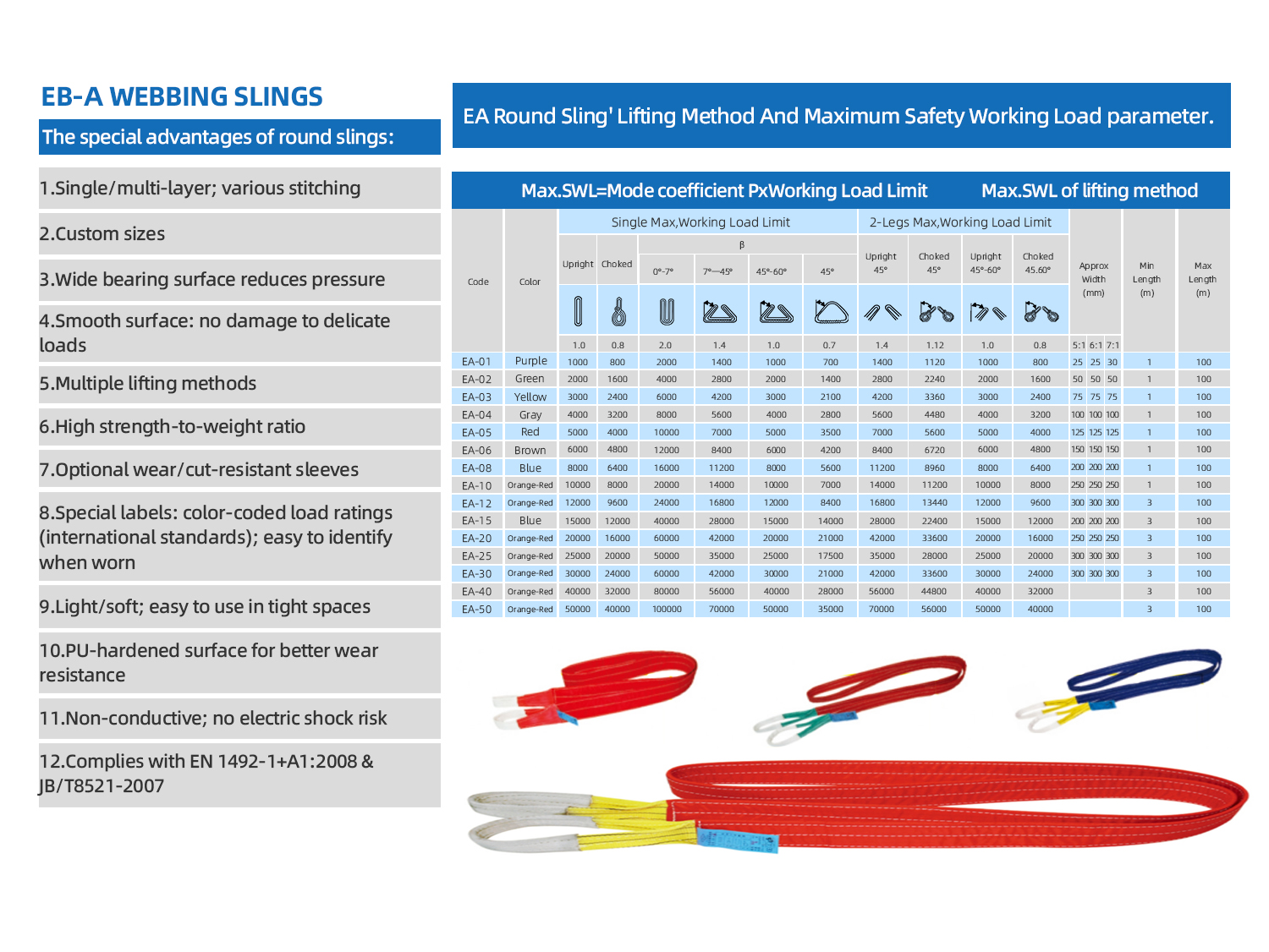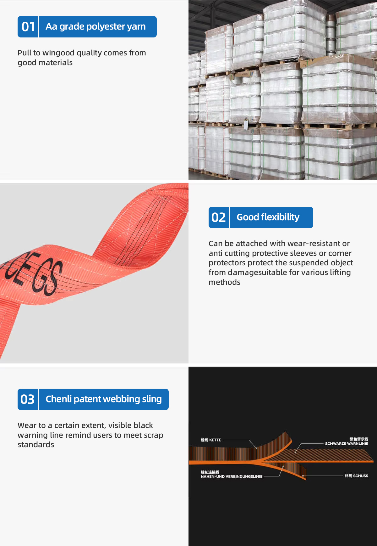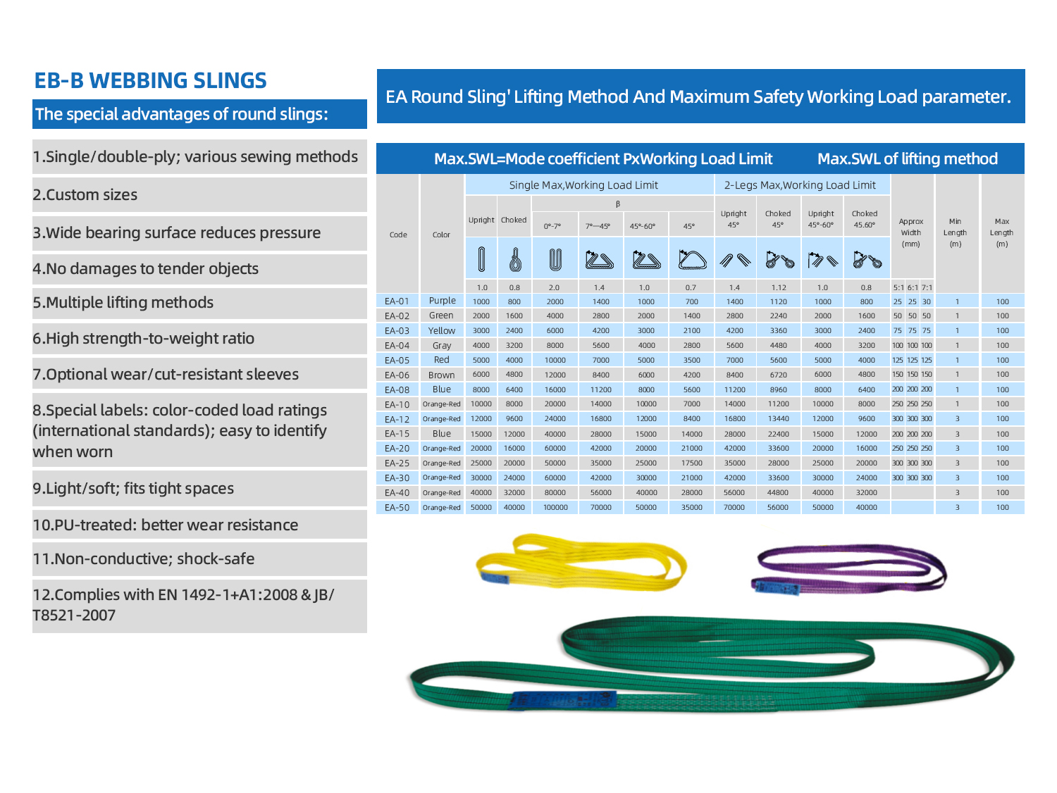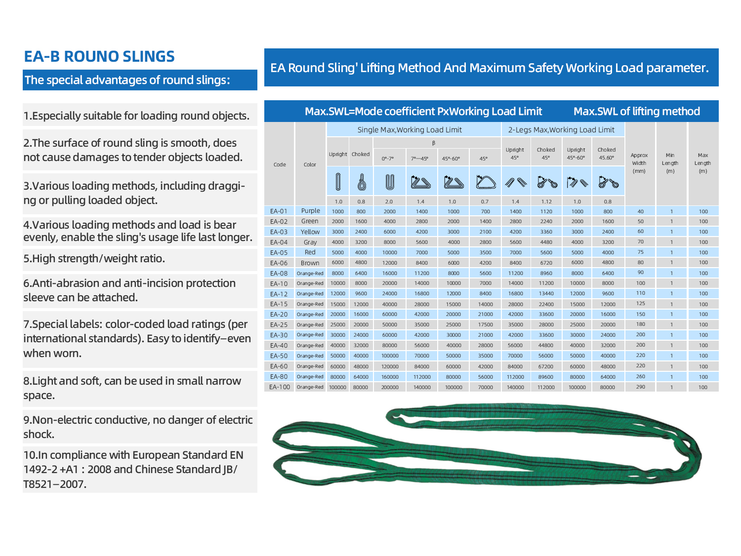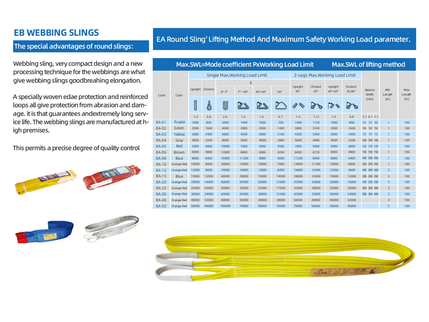 Through years of development, we have established an integrated supply chain—from raw materials to testing equipment—to ensure the quality of heavy‑capacity slings. Our product range includes round slings from 20 to 3,000 tons and flat slings from 20 to 50 tons.